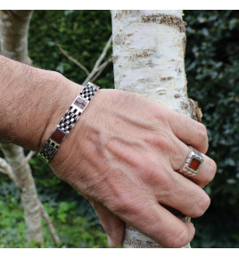 Bague rectangulaire homme en argent 925 et cornaline - Indonésie