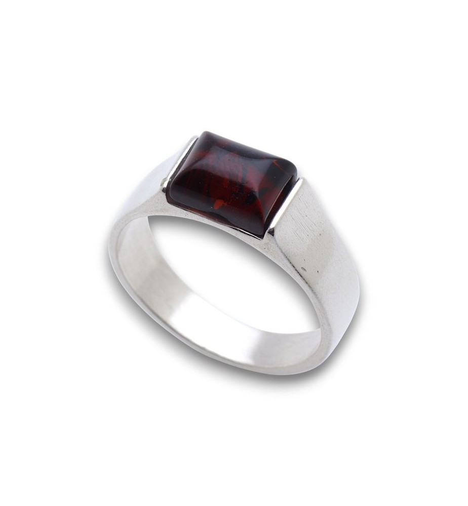 Bague en argent 925 et ambre cerise de la mer baltique - Pologne