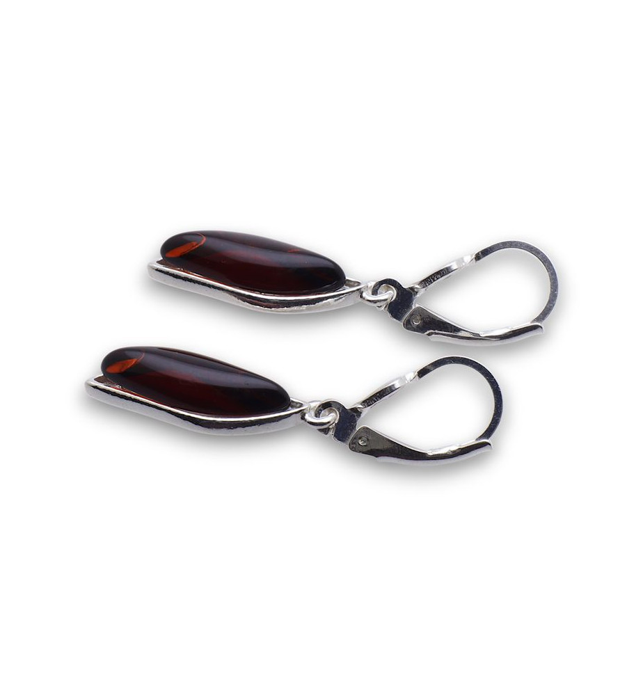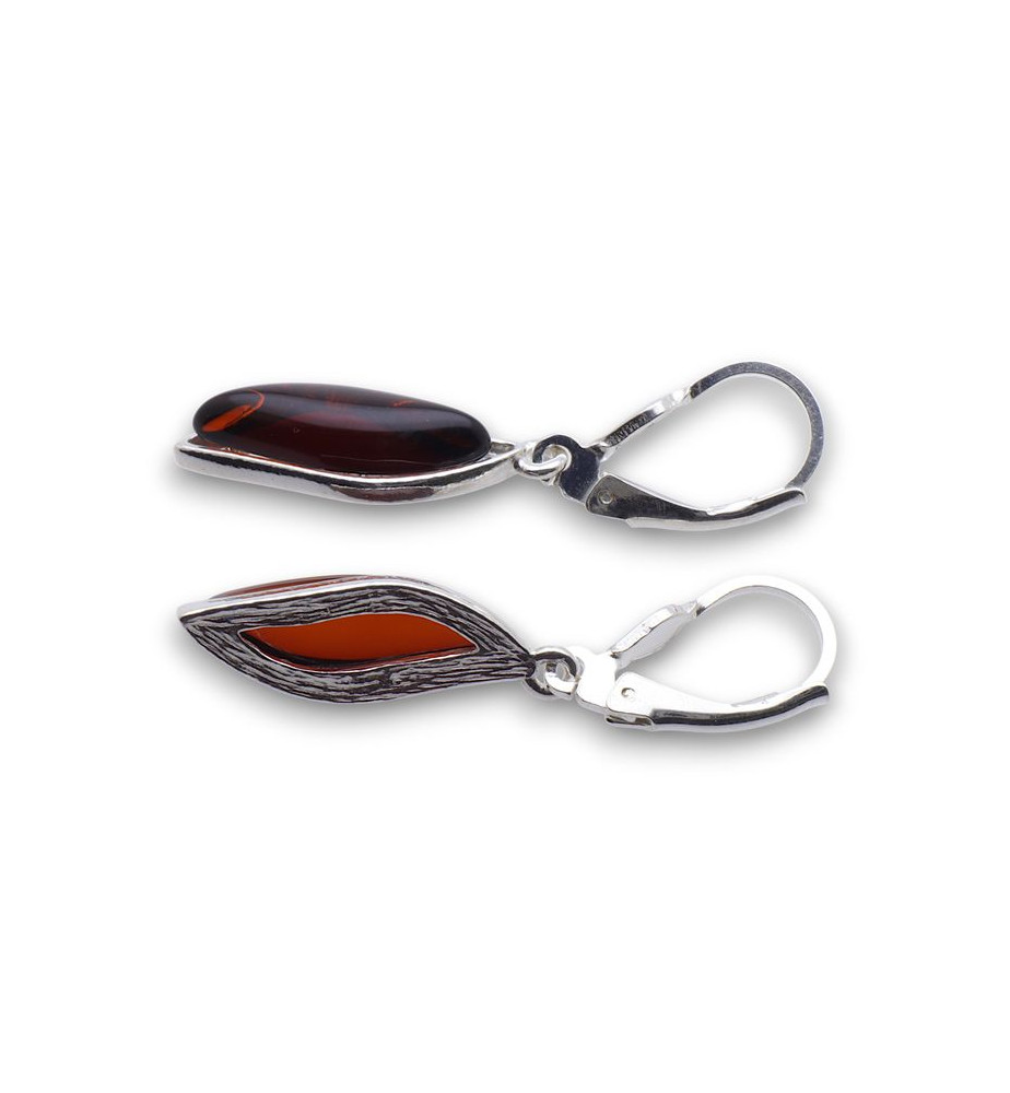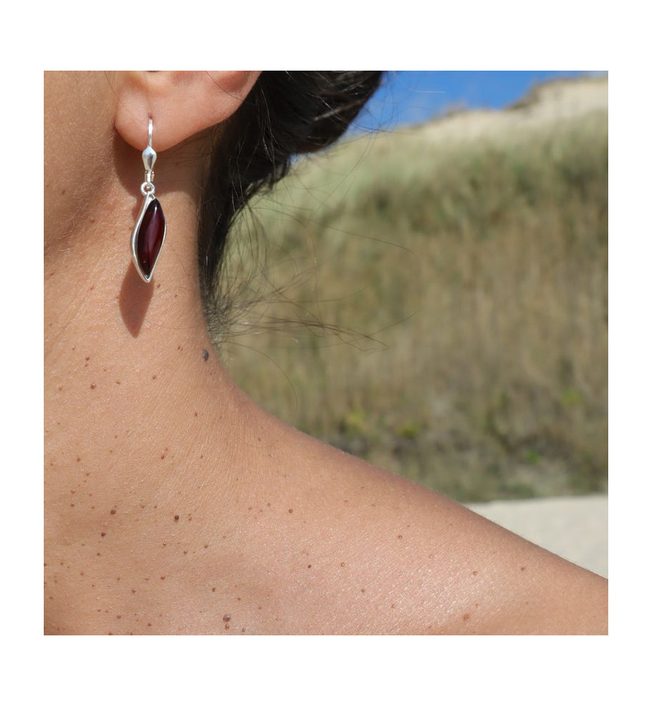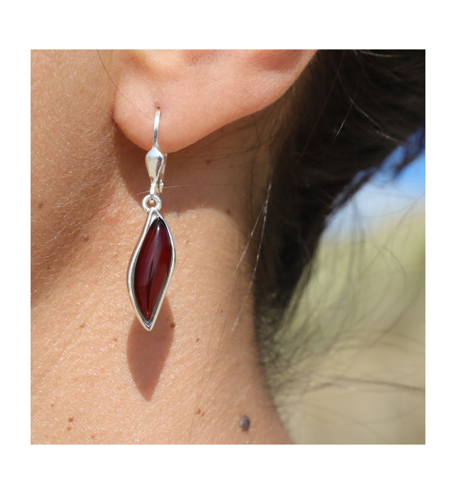 Boucles d'oreilles argent 925 et ambre rouge - Pologne