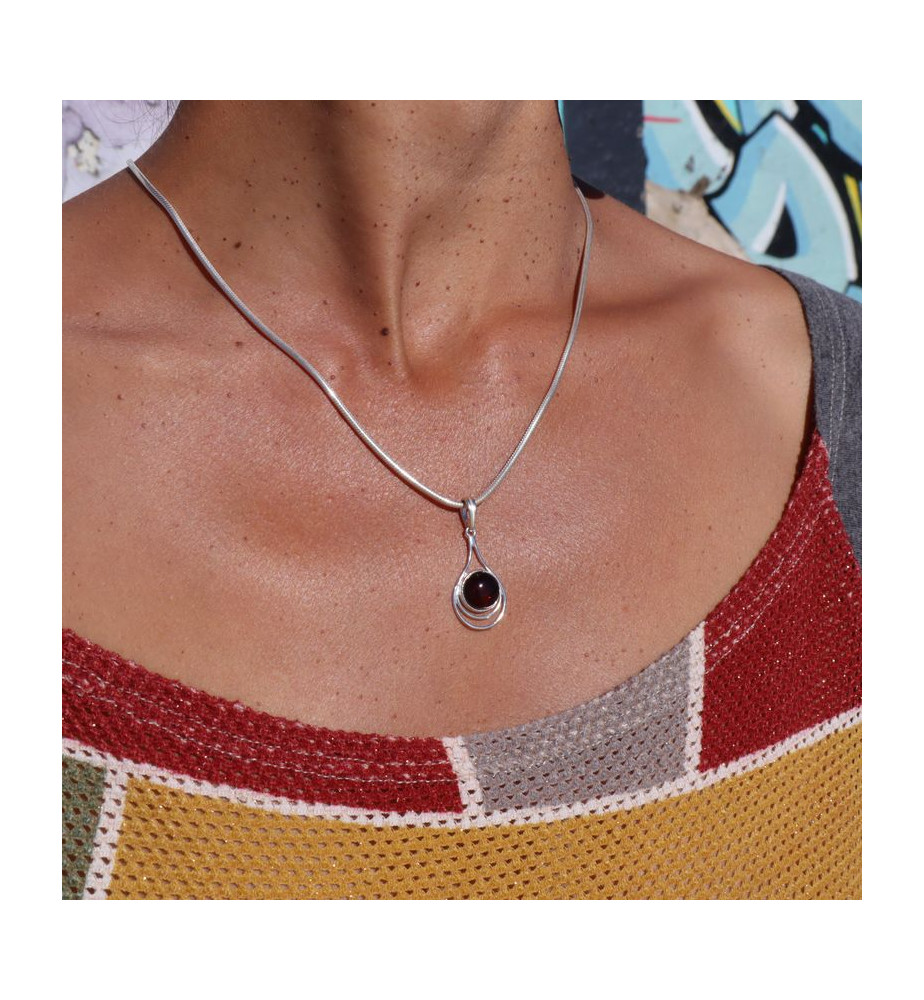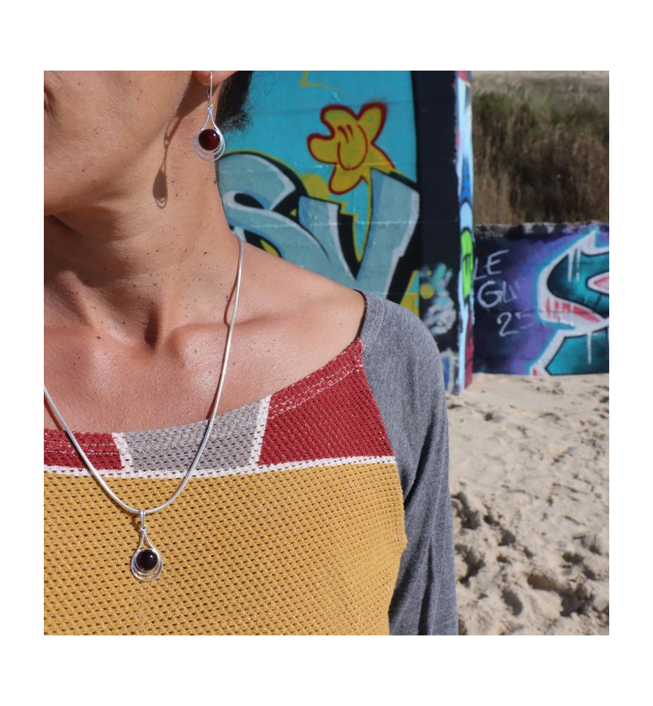 Boucles d'oreilles argent 925 et ambre cerise - Pologne