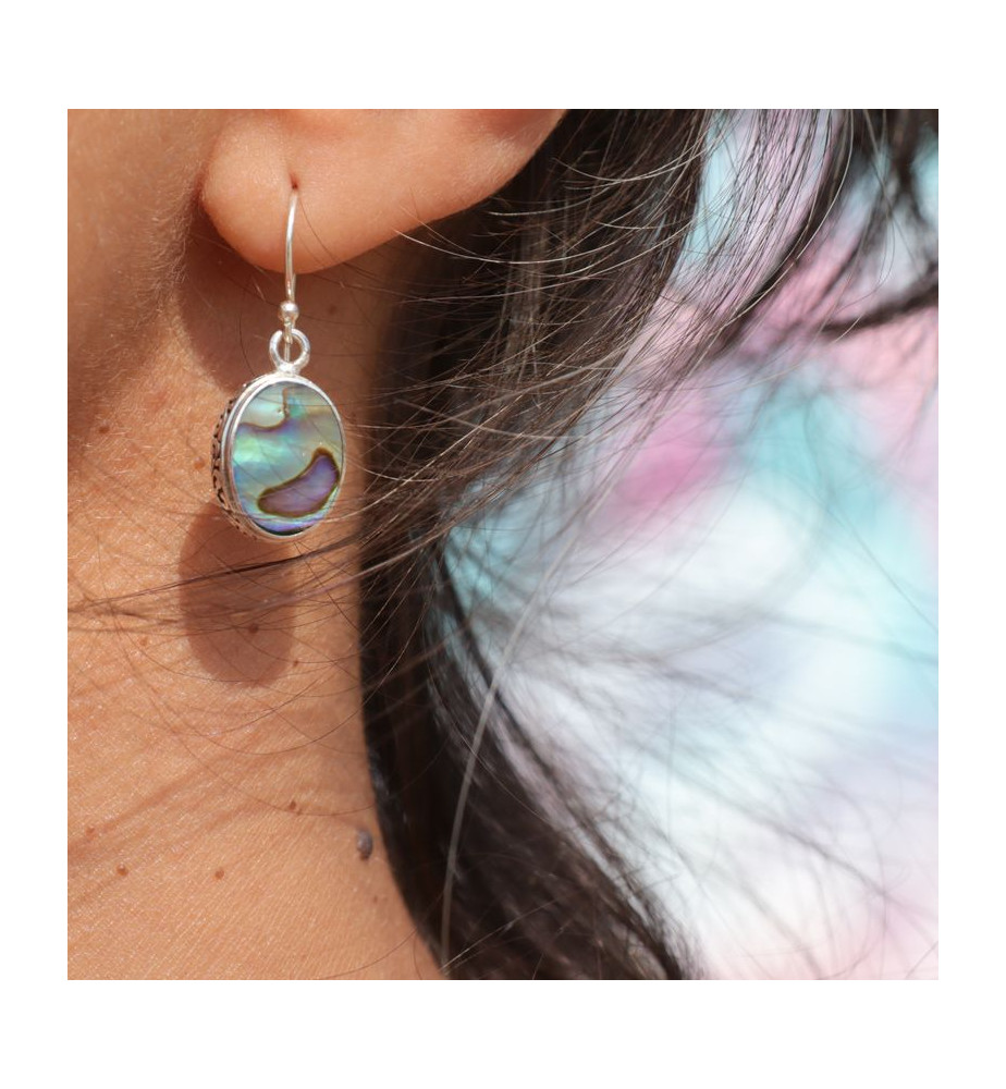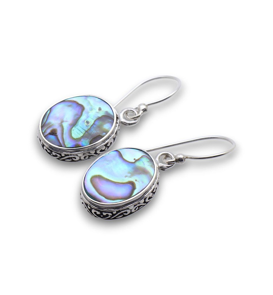 Boucles d'oreilles ovales argent 925 et abalone naturelle - Indonésie