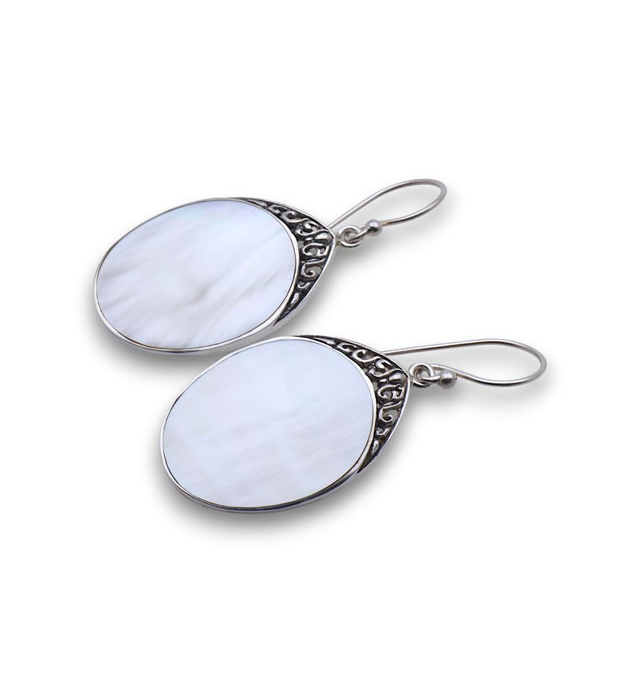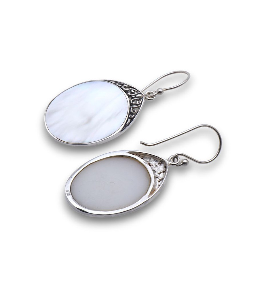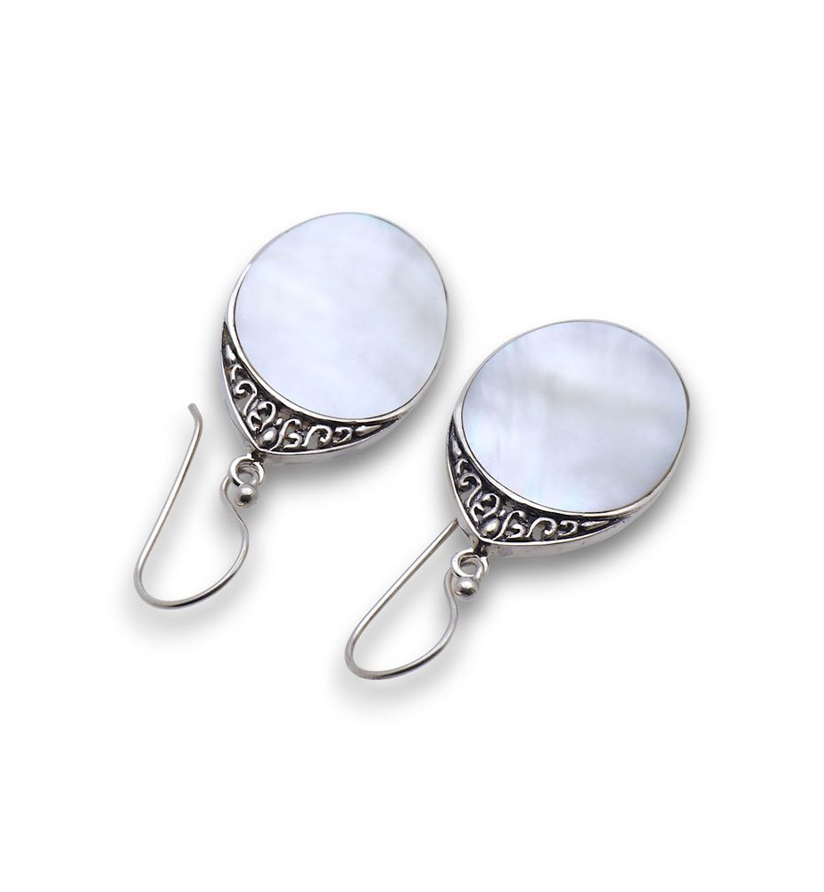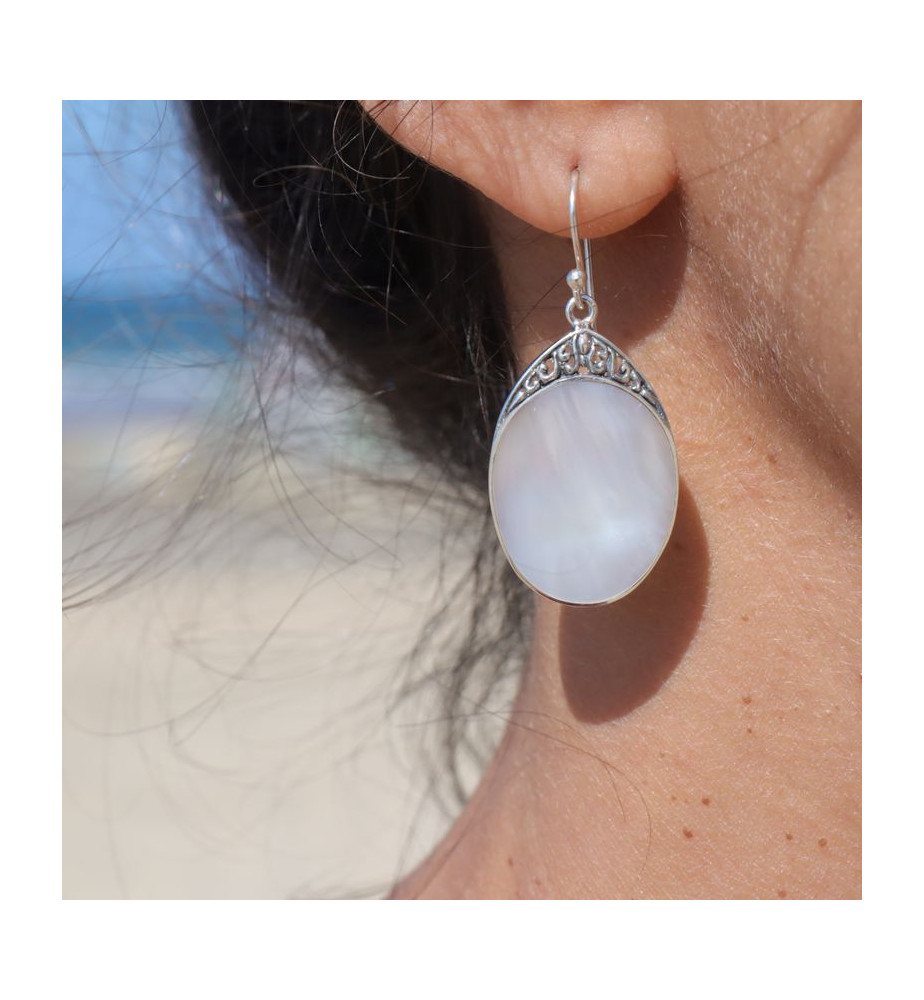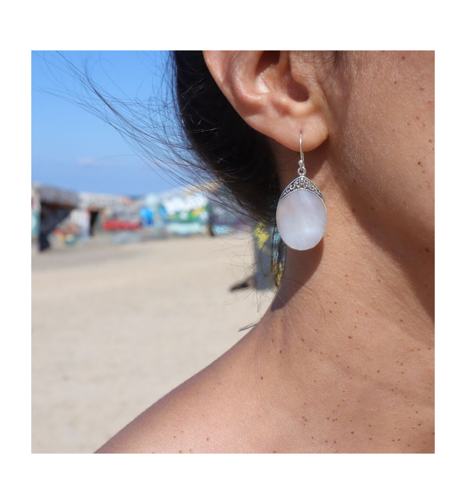Elégantes boucles d'oreilles argent 925 et nacre blanche - Indonésie