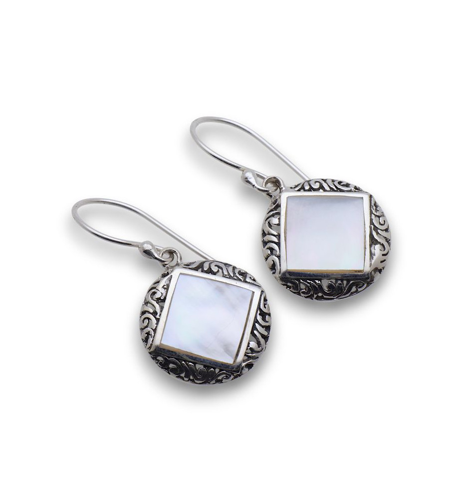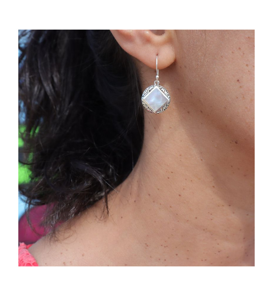 Boucles d'oreilles argent 925 et nacre blanche raffinées - Indonésie