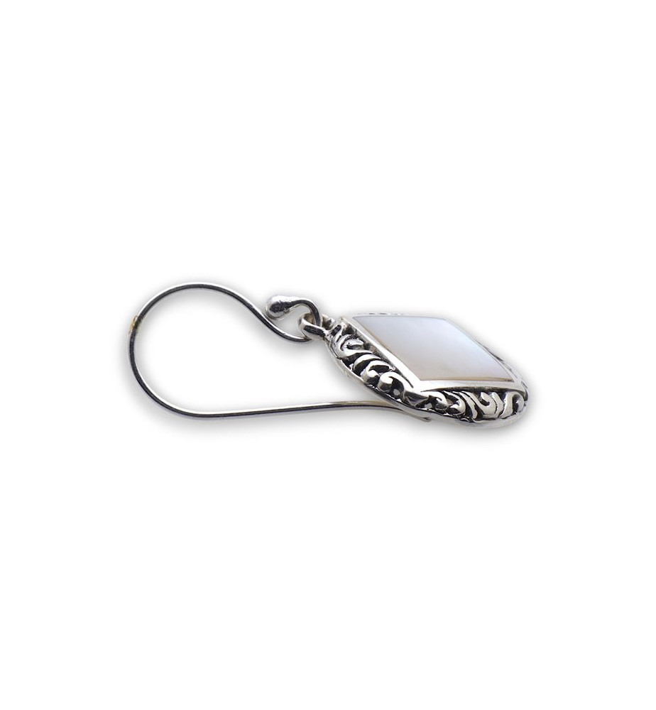 Boucles d'oreilles argent et nacre blanche losangée
