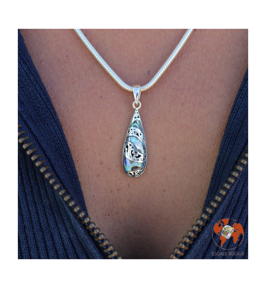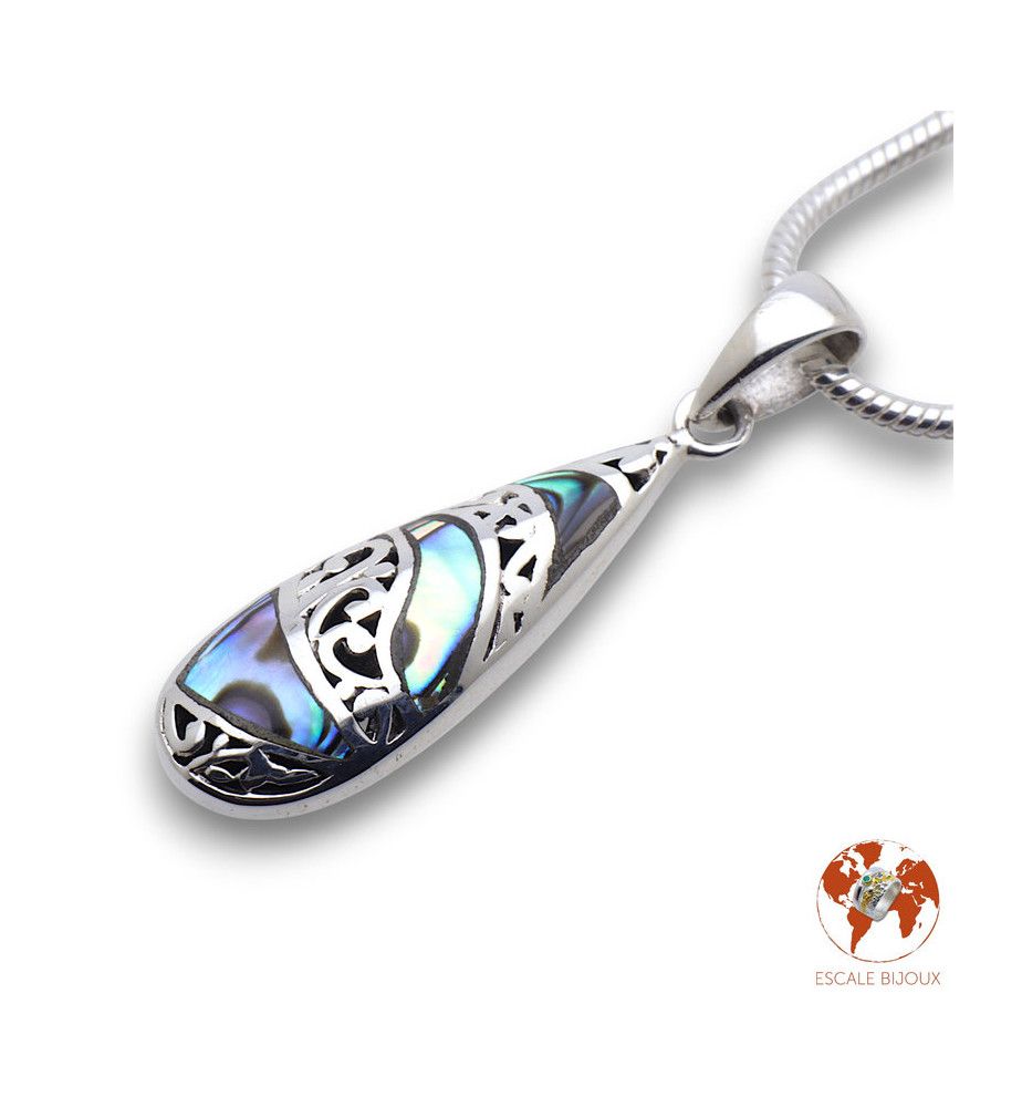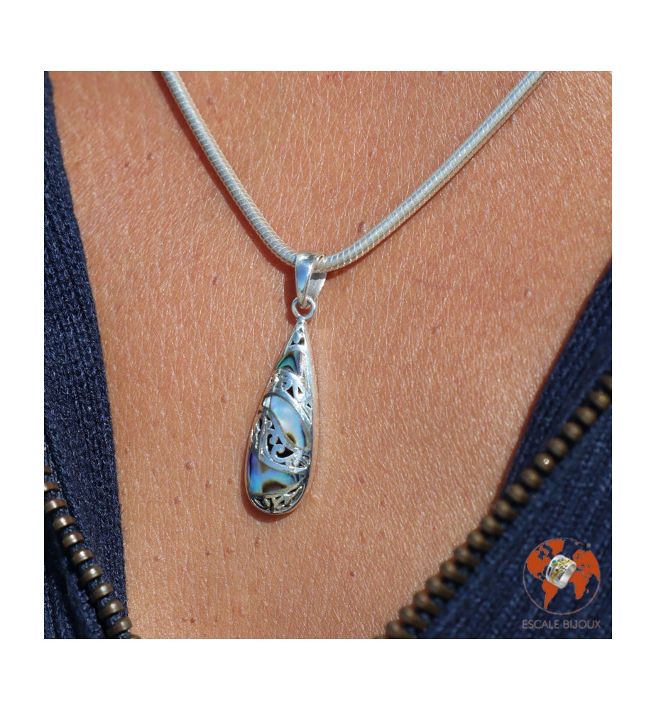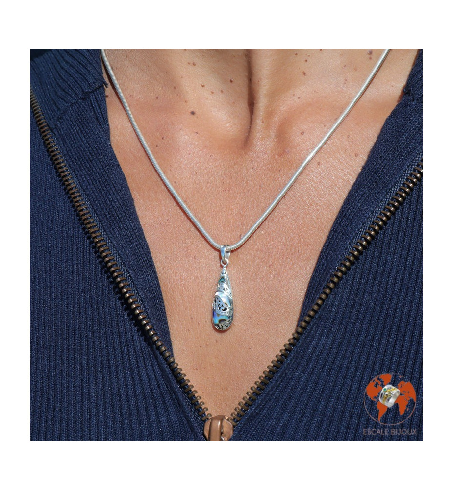 Boucles d'oreilles argent 925 ornées d'abalone naturel - Indonésie