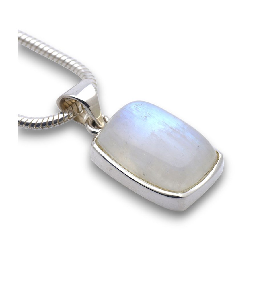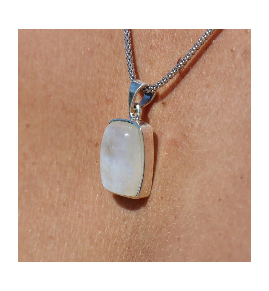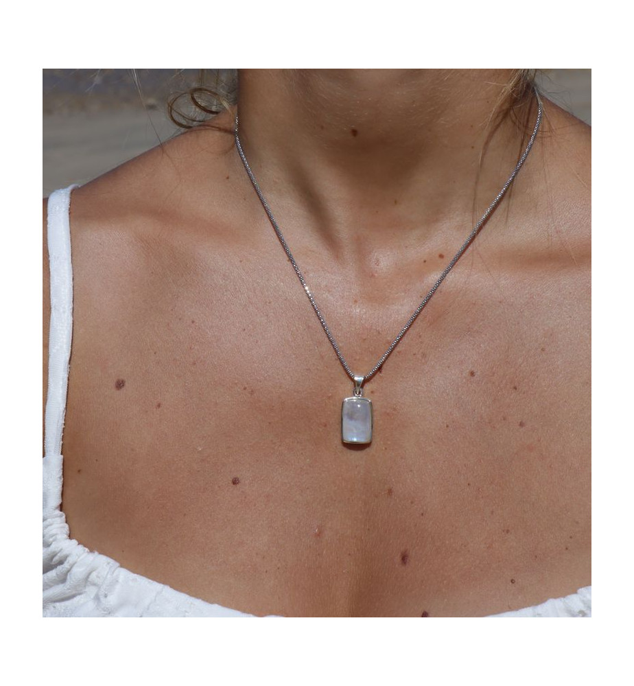 Ce pendentif en argent 925 et pierre de lune apportera une touche de lumière à un haut de couleur foncée. La pierre gemme, taillée en cabochon, est bombée. La monture, sobre, se fait discrète au profit du cristal. Particulièrement facile à porter au quotidien quelque soit la saison, ce pendentif enchantera une femme qui a une préférence pour les bijoux pas trop imposants.
