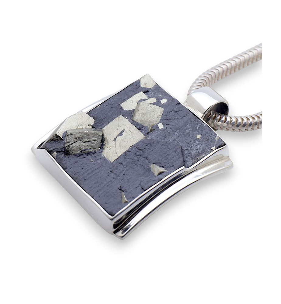 Manchette argent 925 et ardoise incrustée de pyrite - Pologne