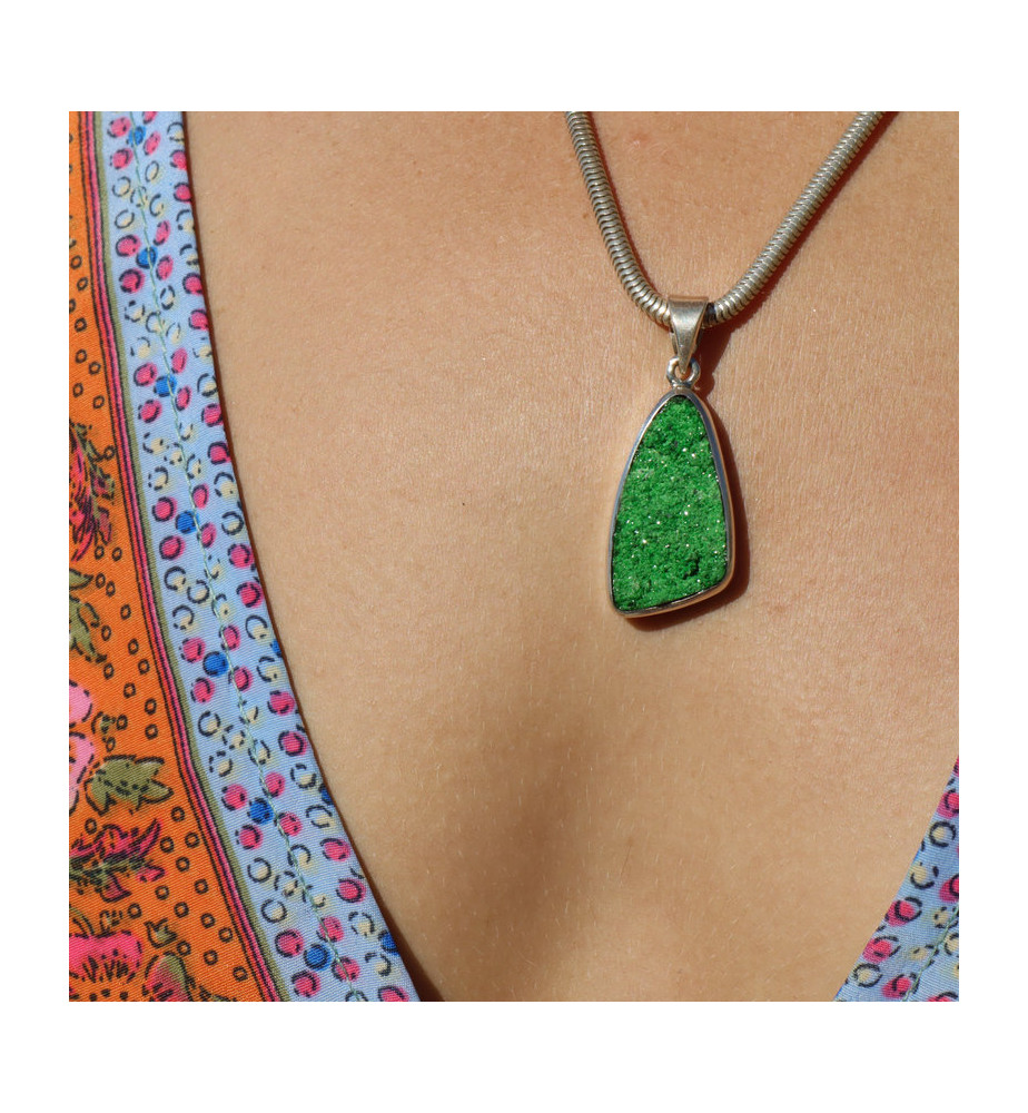 Pendentif argent 925 orné d'une uvarovite - Inde