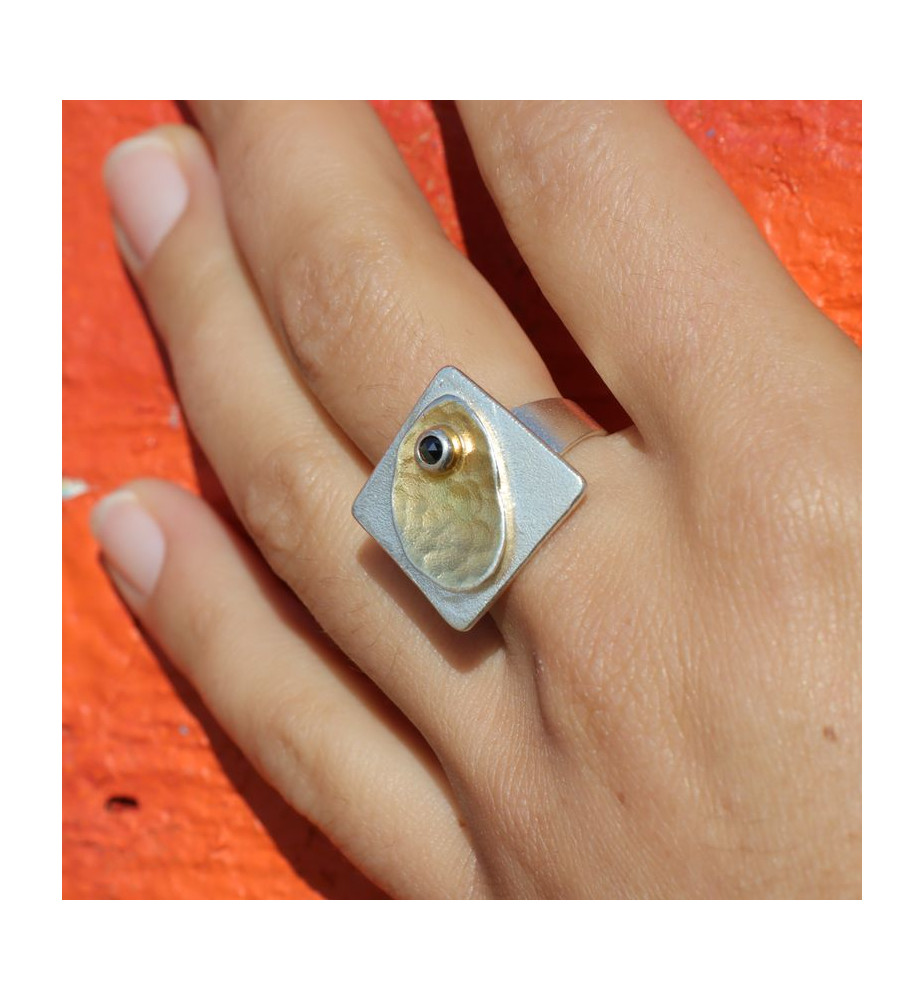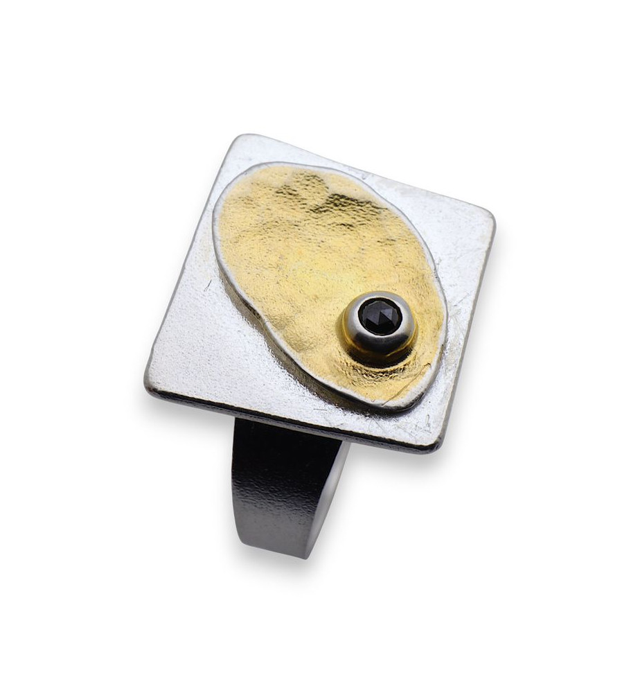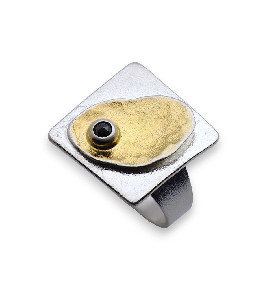 Pendentif trapèze en argent 925 et diamant noir facetté - Pologne