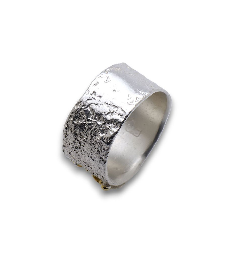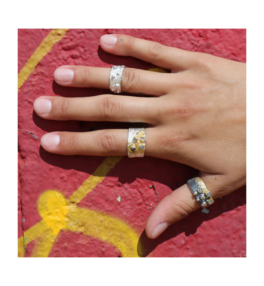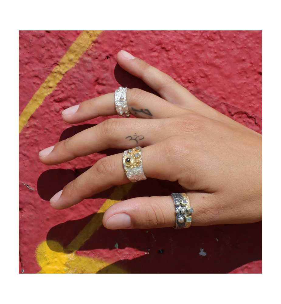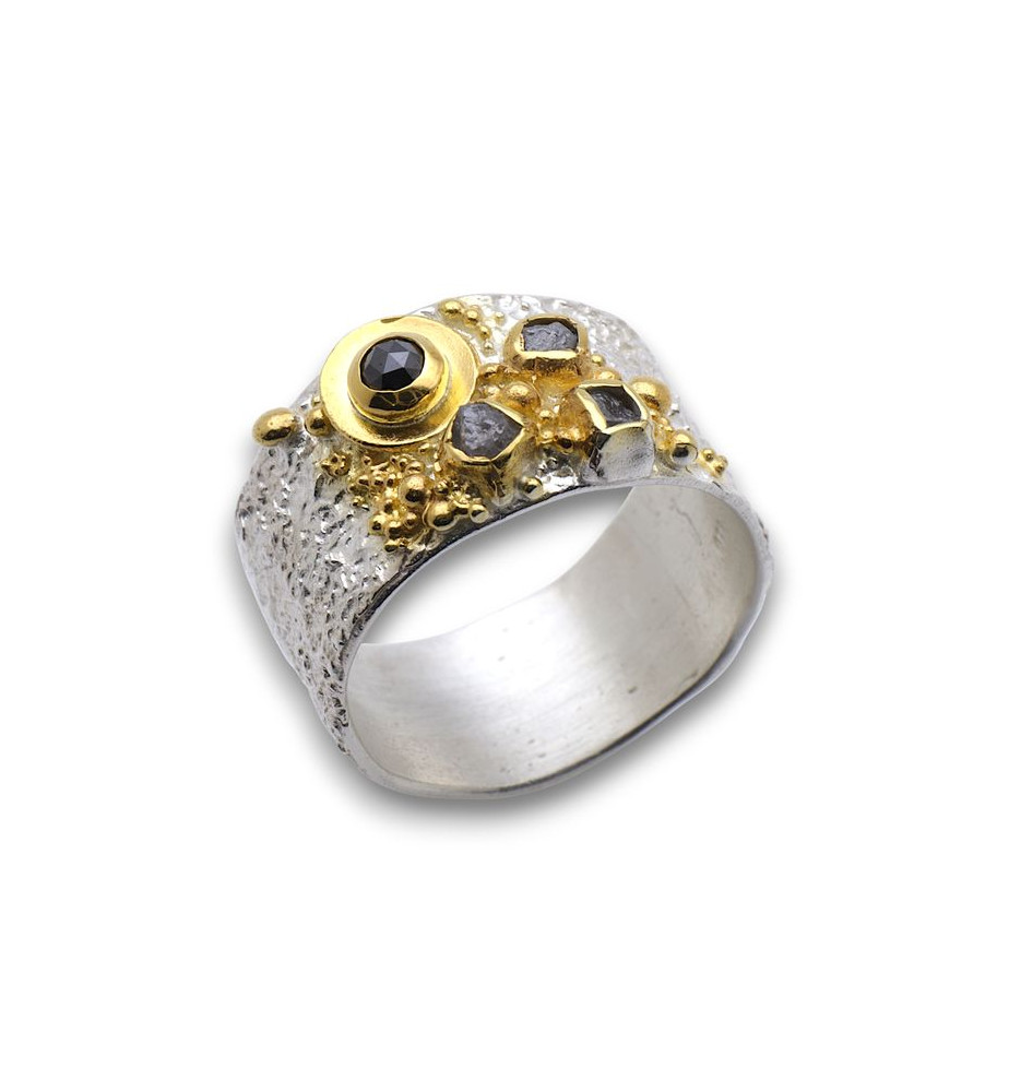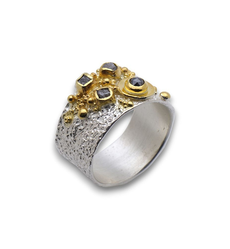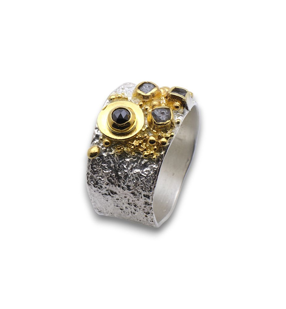 Manchette argent 925 sertie d'un diamant noir et de trois diamants bruts - Pologne
