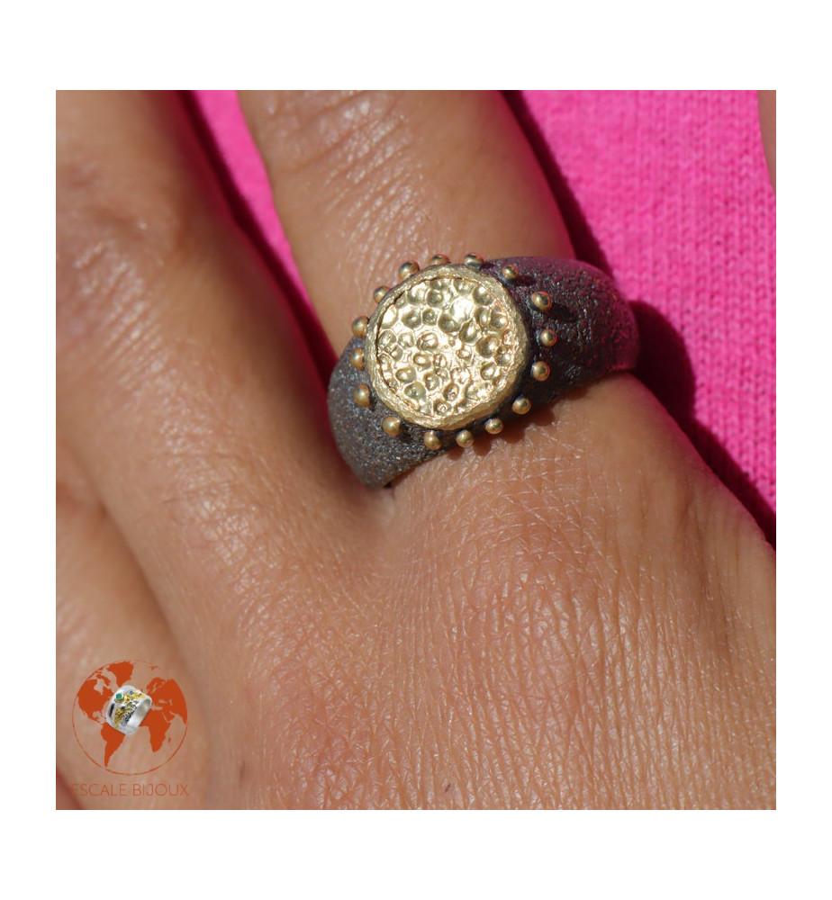 Bague ronde martelée argent et vermeil