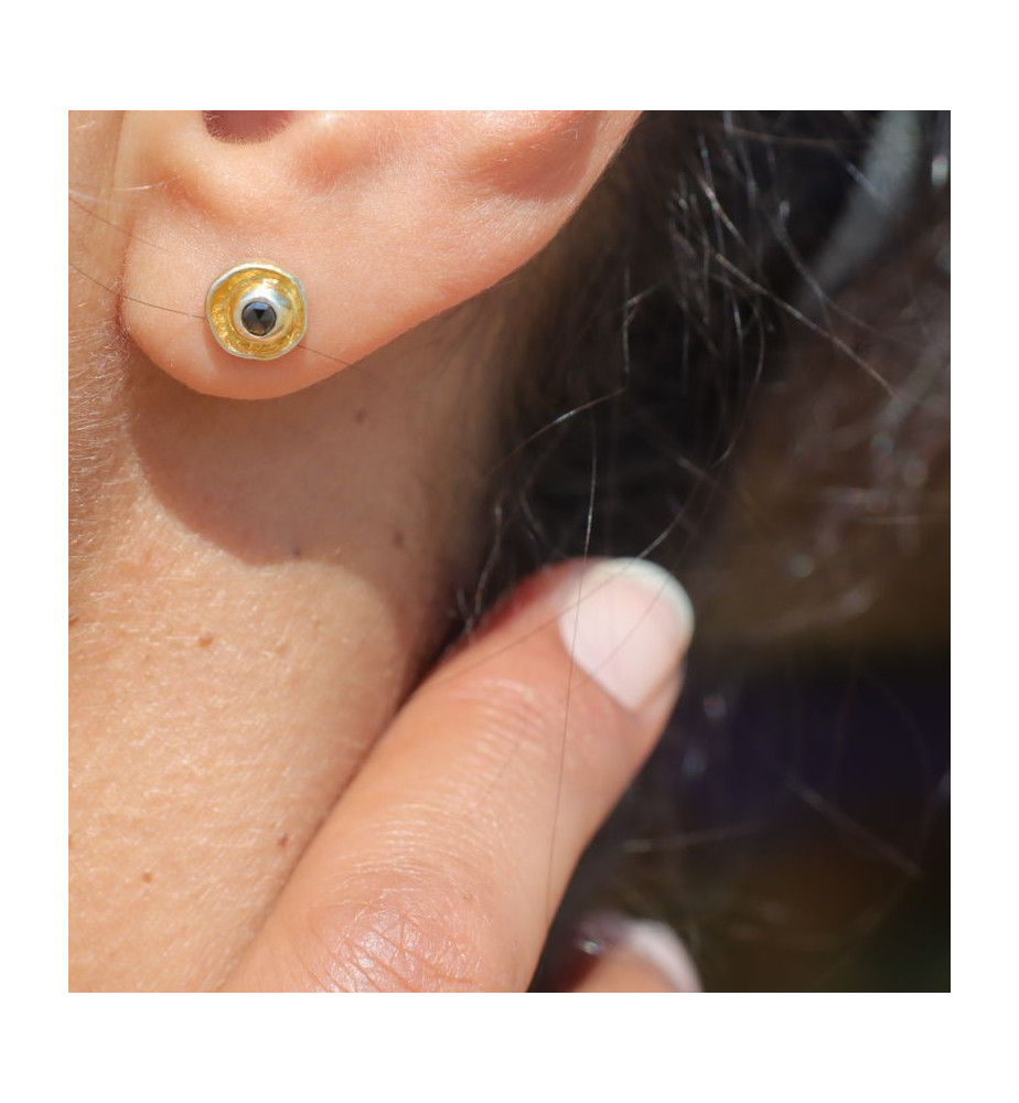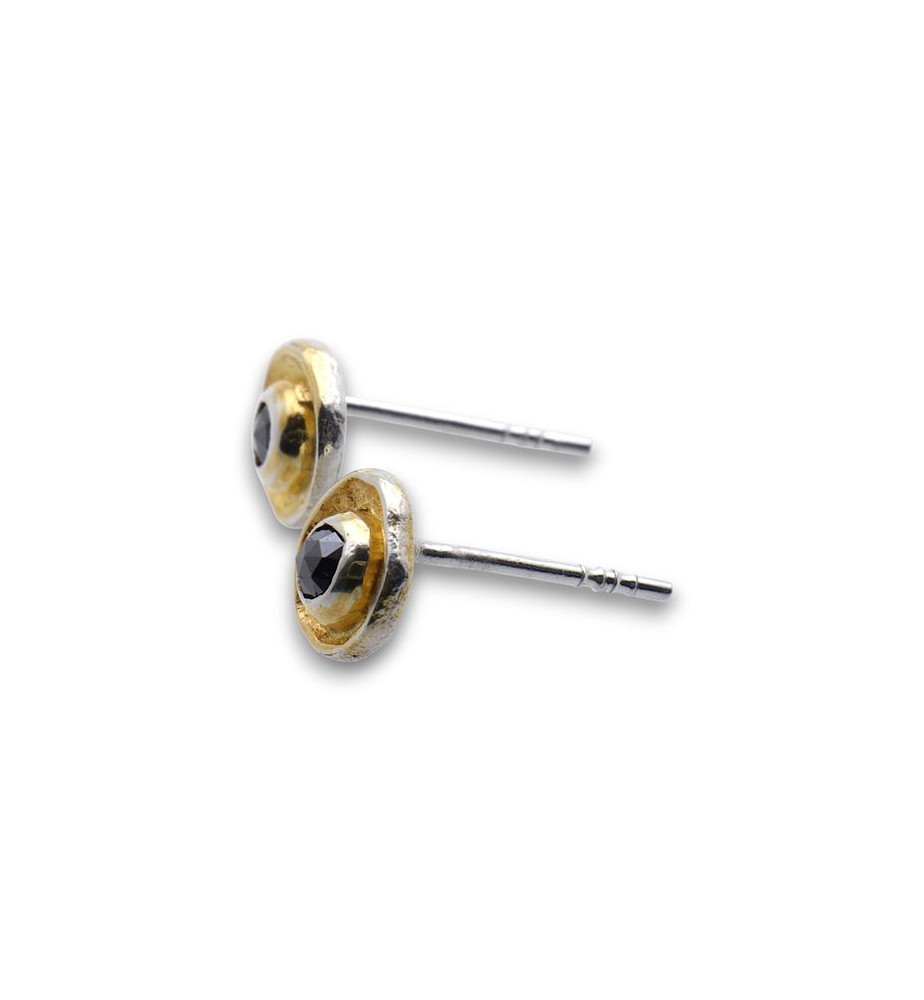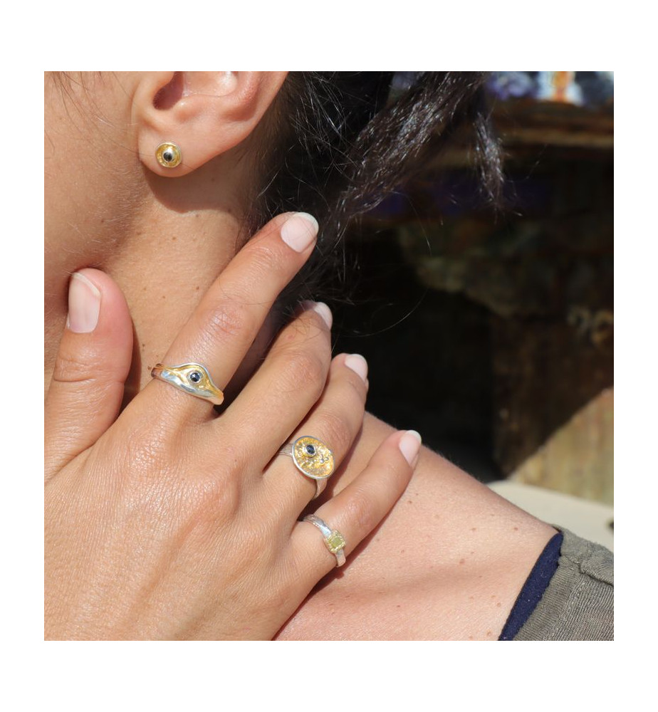 Manchette argent 925 sertie d'un diamant noir et de trois diamants bruts - Pologne