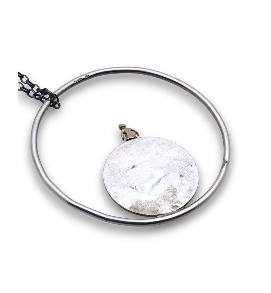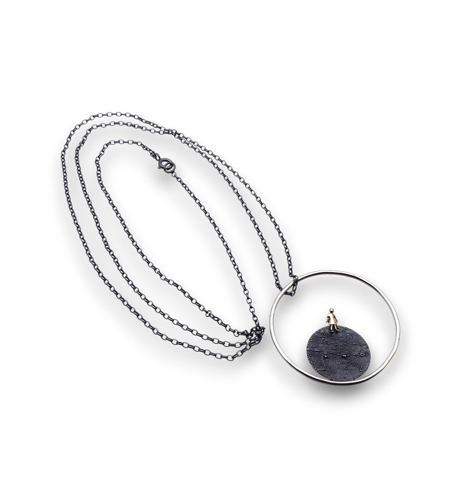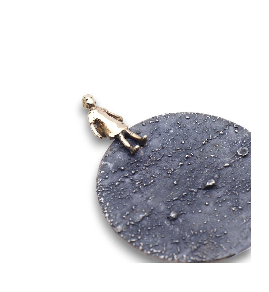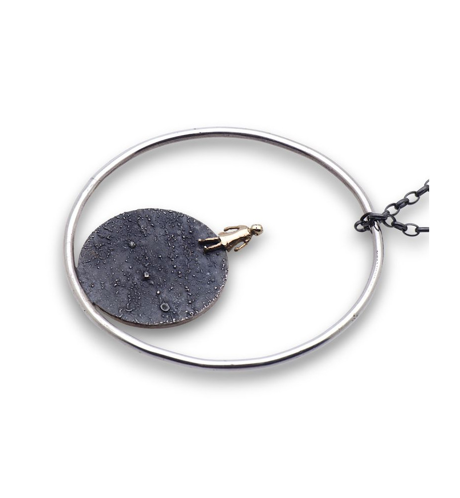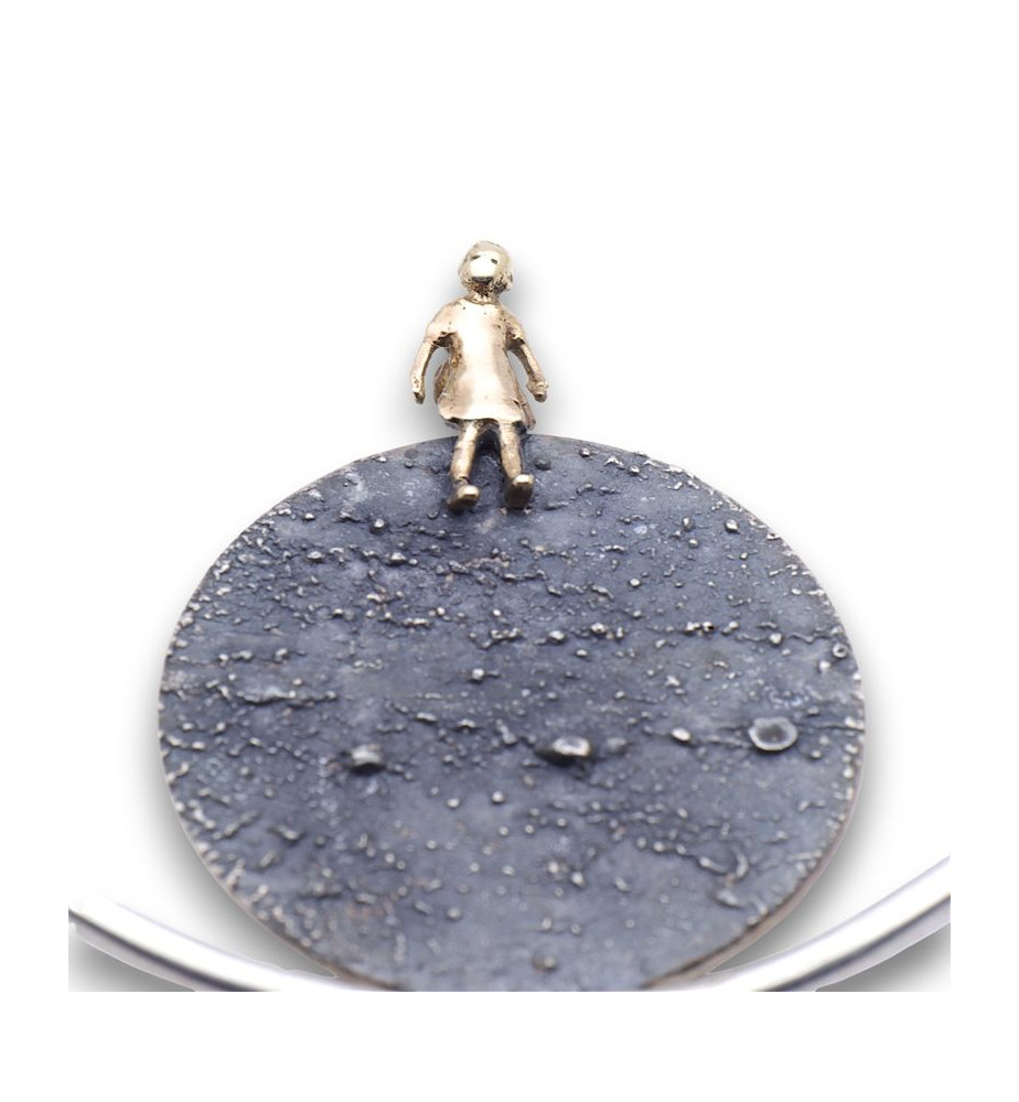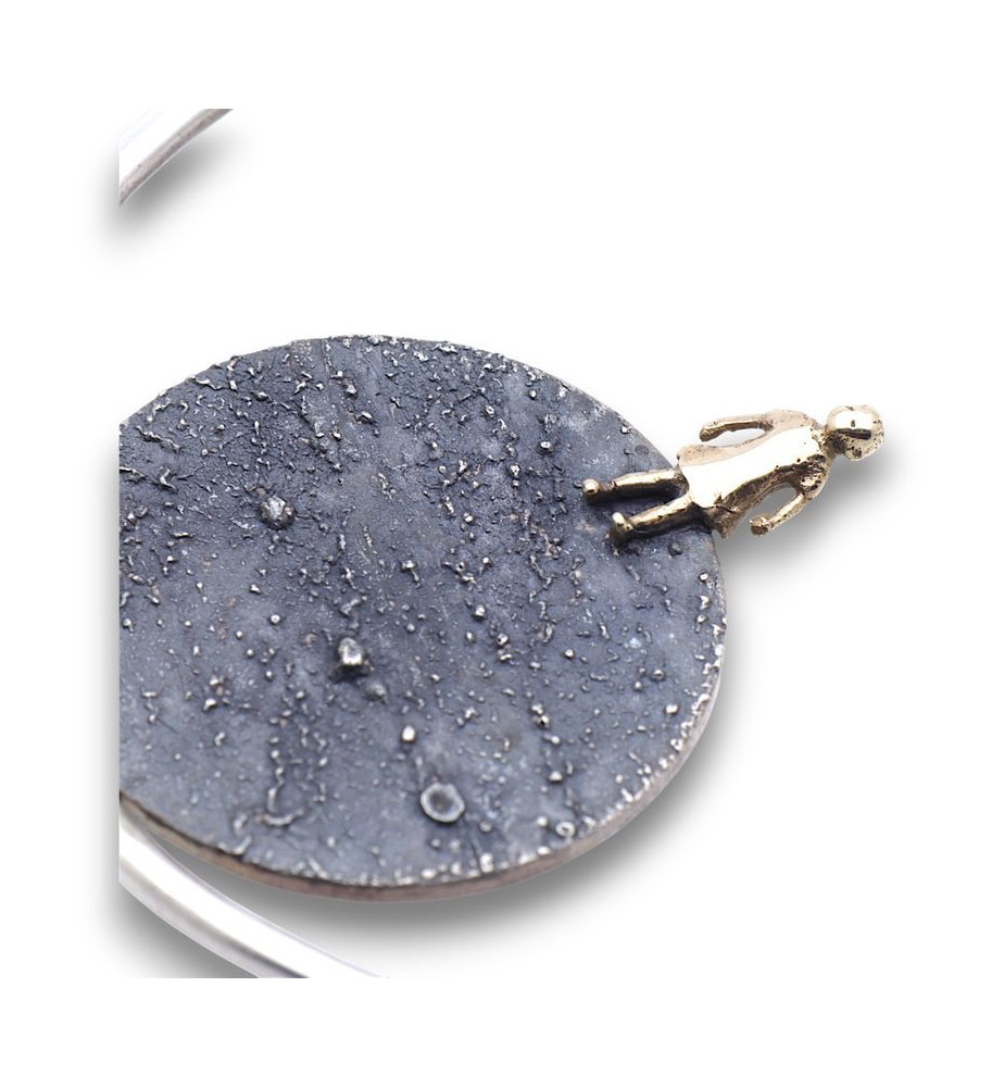 Collier argent 925 avec un personnage miniature au bord de la Terre - Lituanie